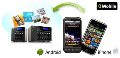 Qmobile enables you to use your handheld devices, such as iPhone, iPod Touch, iPad, and Android™ phones, to stream music, photos, and videos from your Turbo NAS and play the files directly on your devices anywhere. It is like having a media center in your pocket!