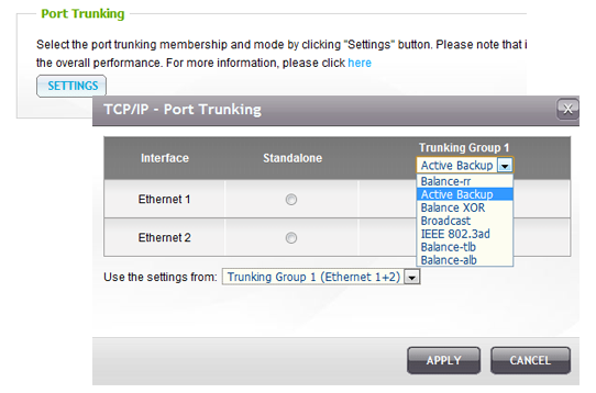 The supported port-trunking modes include: Balance-rr (Round-Robin), Active Backup, Balance XOR, Broadcast, IEEE 802.3ad, Balance-tlb (Adaptive Transmit Load Balancing) and Balance-alb (Adaptive Load Balancing).