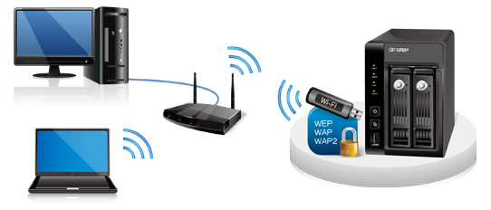 The offering of wireless LAN allows users to enjoy the convenience of Wi-Fi with the Turbo NAS. The Turbo NAS supports USB wireless adapter for flexible and secure deployment in wireless network environment. Various encryption standards, including WEP, WPA-Personal (AES/TKIP), and WPA2-Personal (AES), are supported.