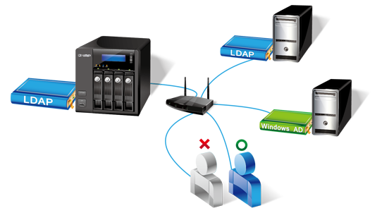 Integrating the Turbo NAS into networks that have deployed an LDAP-based directory service such as OpenLDAP is effortless with QNAP’s LDAP protocol support. This greatly simplifies the efforts of managing a large amount of user accounts and brings equivalent convenience that is available for Windows ADS environments.
