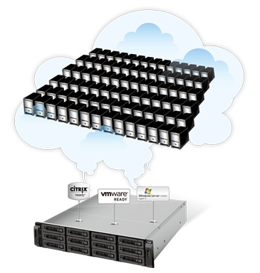 The Turbo NAS is certified with VMware vSphere NFS and iSCSI protocols, Citrix XenServer, and is compatible with Microsoft Hyper-V environment, making the Turbo NAS to be easily deployed as a shared storage in a virtualized testing environment where users need to run different types of operating systems and software applications.