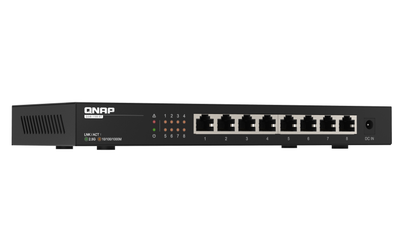 No complex settings are required to use the QSW-1108-8T - simply connect your devices with existing Cat 5e cables and it’s ready to use. The QSW-1108-8T supports auto-negotiation that optimizes transfer speeds (2.5G/1G/100M) and performance for each connected device.