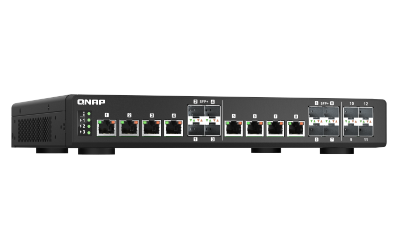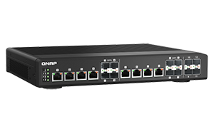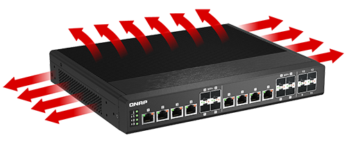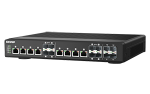 The QSW-IM1200-8C is equipped with eight 10GbE SFP+/ RJ45 combo ports. Compatible with 10GbE and NBASE-T technologies to support five speeds (10G / 5G / 2.5G / 1G / 100M), the QSW-IM1200-8C offers higher transmission speeds when used with existing cables.