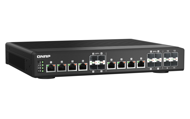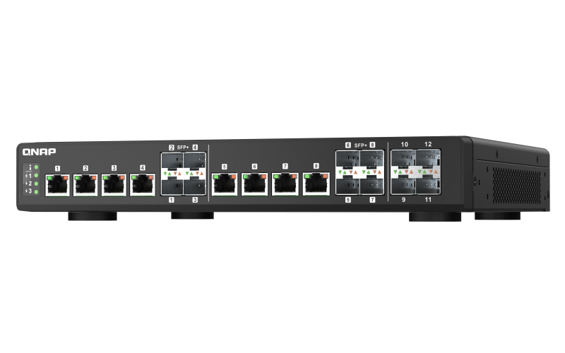 The QSW-IM1200-8C provides bandwidth and packet control functions (such as LACP, VLAN, QoS, and IGMP Snooping) to boost network performance through IP grouping and bandwidth management.