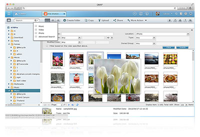 - Stream multimedia contents - File Station supports VLC for multimedia streaming. Just click on your photos, music and videos to directly play the contents. The slideshow display helps gather the media files in an organized manner for you to preview and play.