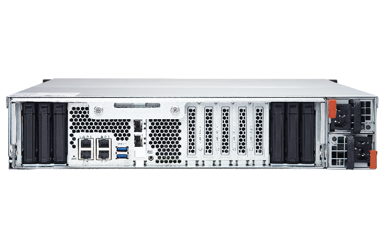 Powered by an Intel® Xeon® D processor, the powerful enterprise-class TES-1885U is open for two operating systems – either the FreeBSD-based QES or Linux-based QTS. While QES supports ZFS for the utmost reliability and allows near-limitless snapshots, block-level data deduplication and real-time data compression, QTS features Qtier Technology, SSD cache, and an abundance of value-added apps to realize storage efficiency and diverse usage applications. The TES-1885U gives the flexibility to choose from two operating systems, enabling businesses to deploy proper operating systems on multiple TES-1885U based on their needs and goals in different stages.