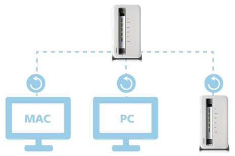 Qsync is a useful tool to synchronize files in multiple computers. It creates a specific “Qsync folder” in your devices that you can simply drop files in, and synchronizes the files to all your devices linked to the Turbo NAS.