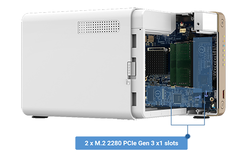 Attain greater NAS performance by installing M.2 2280 NVMe PCIe SSDs (sold separately).