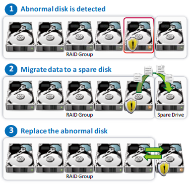 S.M.A.R.T. & Advanced Hard Drive Health Scan (HHS) The Turbo NAS supports HDD S.M.A.R.T. (Self-Monitoring Analysis and Reporting Technology) which monitors the hard drive status, and sends out alert notifications through email for administrators to take precautions. Moreover, the HHD Health Scanning technology can examine the hard drive status and prevent possible data loss. |