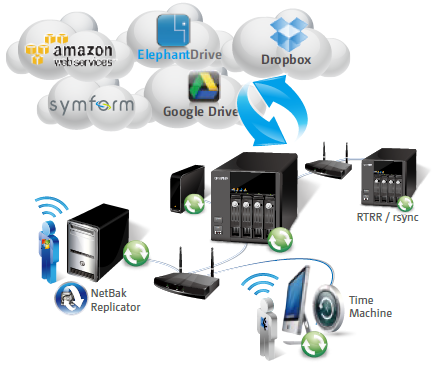 The QNAP NetBak Replicator, provided with any Turbo NAS unit free of charge, helps you easily back up files from Windows PC - entire disk drives, documents, pictures, music, videos, fonts, emails, and more - to the Turbo NAS. The operation is very simple. You can do the backup task in just a few clicks using NetBak Replicator by the setting of real-time synchronization, scheduled backup and auto-backup from multiple PCs to the Turbo NAS.