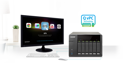 QNAP's exclusive QvPC Technology consolidates a number of high-end technologies including VM integration, multimedia transcoding, HDMI output, cloud integration and NAS connection technologies, allowing users to operate the TS-651 as a PC when they plug in a keyboard, mouse and monitor. With QvPC Technology, the TS-651 is transformed into a cost-effective device with PC functionalities for users to directly access stored data, run multiple applications using Windows/Linux/UNIX/Android-based VMs, surf the web on Google Chrome, enjoy Full HD videos with up to 7.1 channel audio with XBMC, monitor Surveillance Station in real time with local display, and much more.