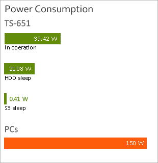 The TS-651 utilizes a 22nm CPU and DDR3L RAM which feature low voltage, low power consumption, maintaining high performance in system operations with the benefit of energy-saving. Other eco-friendly designs include S3 sleep mode, HDD standby, scheduled power on/off, hard disk standby mode, and Wake on LAN.