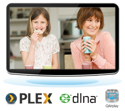 Stream media via DLNA, AirPlay, and Plex