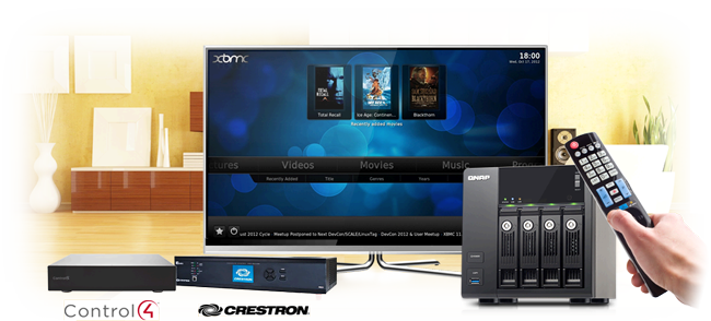 Are you tired of multiple remote controls on your table and messy wires coming from multiple devices? QNAP Turbo NAS is now compatible with industry leading home automation systems such as Control4 and Crestron. You can easily navigate the built-in XBMC media player on your Turbo NAS along with live monitoring from your VioStor NVR through one remote controller or pad. QNAP makes combining your network storage with your existing home automation system more easy than ever. With the integration of a QNAP Turbo NAS with a variety of popular controller systems, you can enjoy your movies and monitor your home in a few simple clicks, allowing a simple way to enjoy the convenience of home automation.
