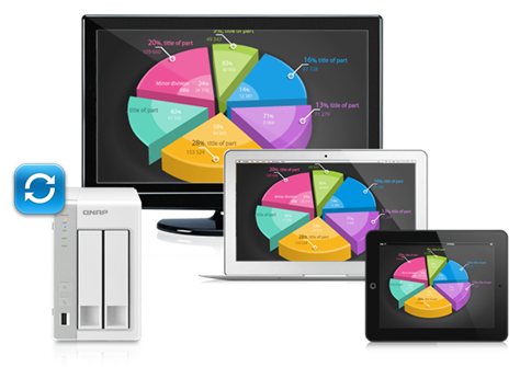 Qsync is a useful tool to synchronize files in multiple computers. It creates a specific “Qsync folder” in your devices that you can simply drop files in, and synchronizes the files to all your devices linked to the Turbo NAS.
