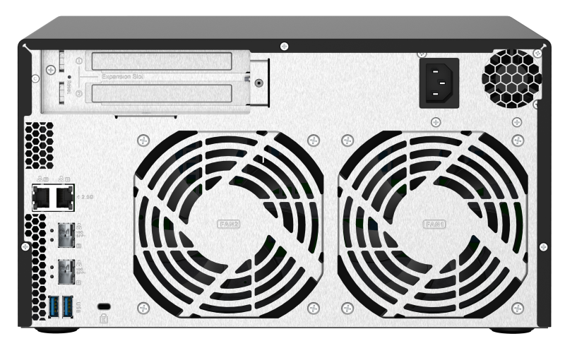 8 x 3.5″/ 2.5″ drive slots, 2 x 10GbE SFP+ LAN, 2 x 2.5GbE LAN, 3 x USB 3.2 Gen1, 1 x PCIe 2.0 x2 slot, hardware encryption, TL/TR expansion units