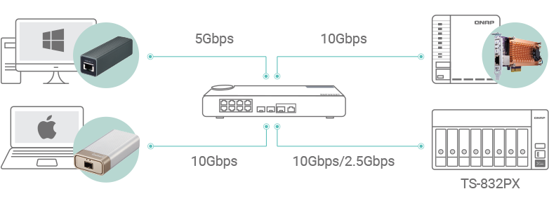 PCIe supported NAS and Windows 10/Linux PCs. Visit https://www.qnap.com/go/compatibility for the compatibible NAS.