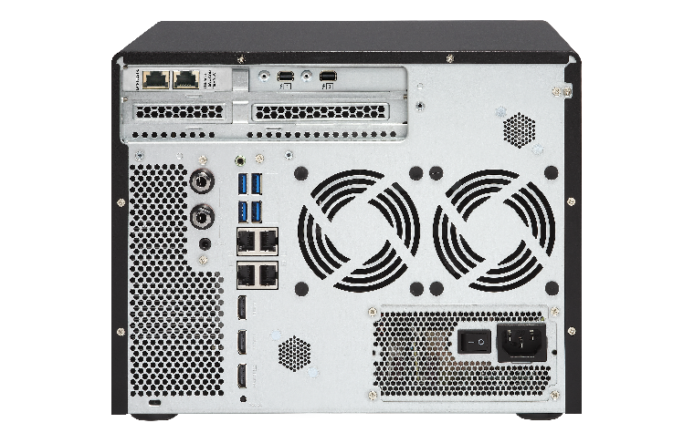 With four 1 Gigabit Ethernet ports and two 10 Gigabit Ethernet ports, the TVS-882T allows applications to use dedicated interfaces to meet network traffic distribution requirements. Network interfaces can also be easily managed with the Network & Virtual Switch app, which enables optimized network resources for TVS-882T, virtual machines and containerized apps. No matter if they are business organizations or individual users, they can effortlessly manage network connections by using the Network & Virtual Switch.