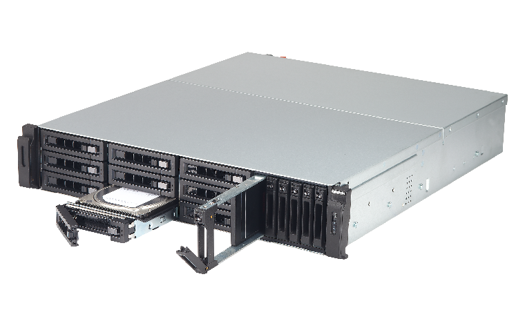 With the TVS-EC1580MU-SAS-RP R2's removable motherboard drawer, IT administrators have easier access in upgrading/installing RAM, the internal cache, 40GbE adapter and other components. The motherboard itself can be removed and replaced without needing to remove the heavy TVS-EC1580MU-SAS-RP R2 from the rack cabinet, making it especially useful in maintaining the TVS-EC1580MU-SAS-RP R2 in data centers with multiple rack cabinets.