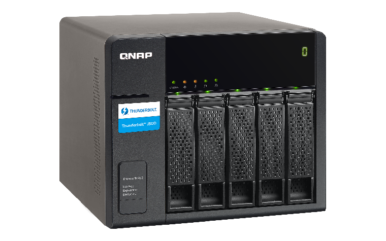 When expanding data storage capacity, deploying multiple servers can lead to complexity in management and dramatically increased costs. QNAP TX-500P expansion enclosure provides a flexible expansion alternative designed with easy setup in mind for scaling up Thunderbolt NAS storage space via high-speed Thunderbolt 2 (20Gbps) cables. The TX-500P provides an additional 5 hard drives providing up to 40 TB* expanded capacity for the Thunderbolt NAS, making it ideal for data backup, 4K digital media collection and video surveillance storage with blazing-fast data transmission performance.