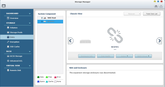 If your UX-500P is accidentally disconnected, the Turbo NAS enters missing mode and blocks I/O access to protect the stored data. The system can then recover from the missing mode to the normal state with data staying intact.