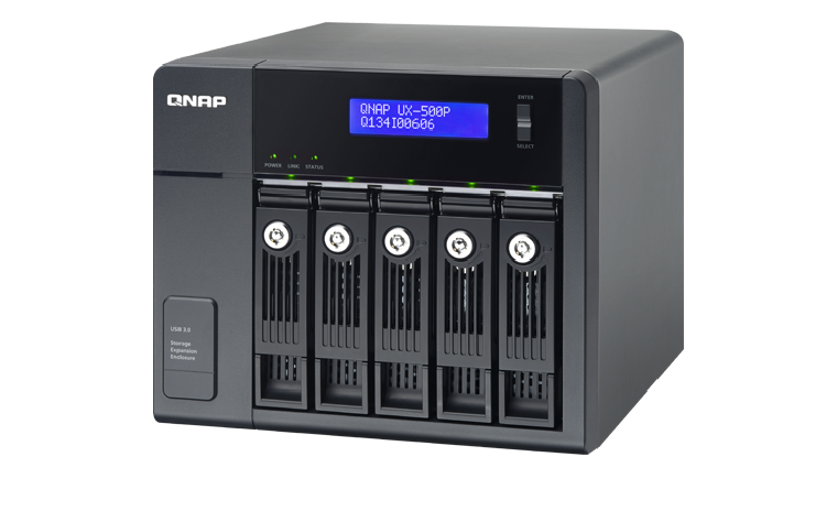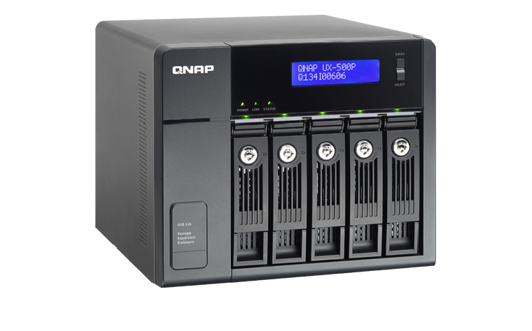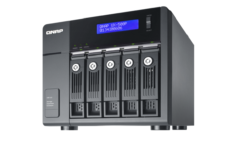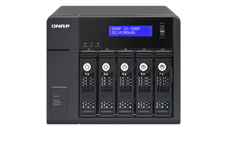 When expanding data storage capacity, deploying multiple servers can lead to complexity in management and dramatically increased cost. The QNAP UX-500P expansion enclosure is a budget-friendly expansion alternative designed with easy setup in mind for expanding the total storage space of your Turbo NAS for general applications. By connecting one expansion enclosure, the UX-500P offers a hassle-free storage expansion for home/small office use. The UX-500P provides additional 5 hard drives for the Turbo NAS and allows for a total expansion raw capacity of 30 TB* making it especially useful for data backup, digital media collection, and video surveillance.