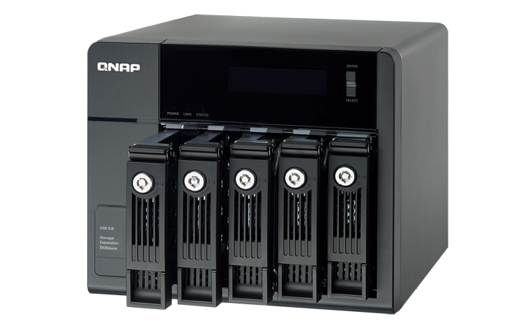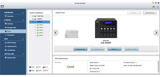 Simply connect the UX-500P to a Turbo NAS* and power it on. The Turbo NAS will automatically detect the hard drives in the UX-500P as newly installed local drives. The Turbo NAS capacity can then be expanded as a large volume seamlessly and economically by using the powerful QTS Storage Manager.