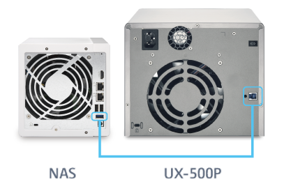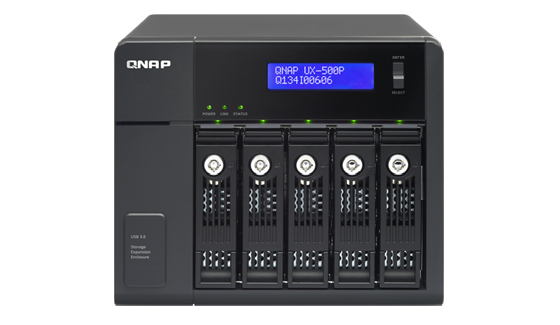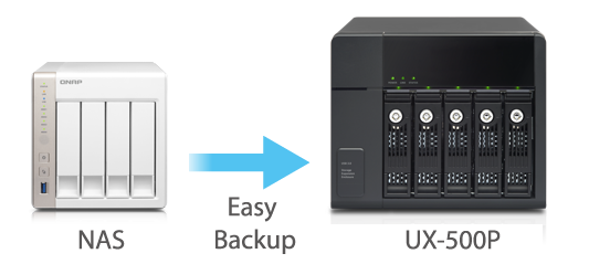The UX-500P can be used as a budget-friendly external storage to perform speedy and secure backup tasks for the Turbo NAS. The administrator can back up the Turbo NAS data to the UX-500P on a real time or scheduled basis.