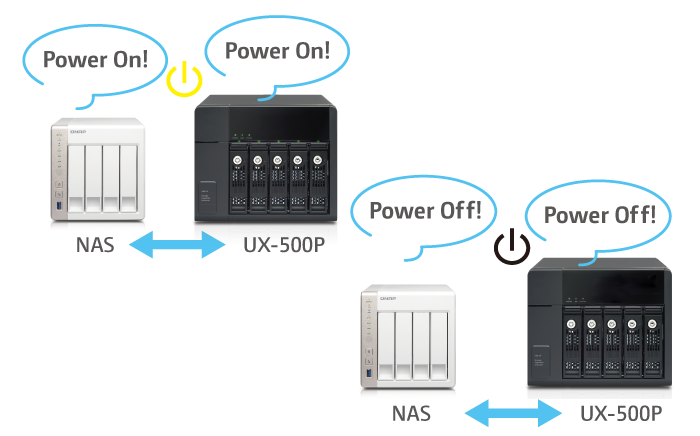 The UX-500P automatically powers on and off with your Turbo NAS, allowing for total convenience and energy saving.