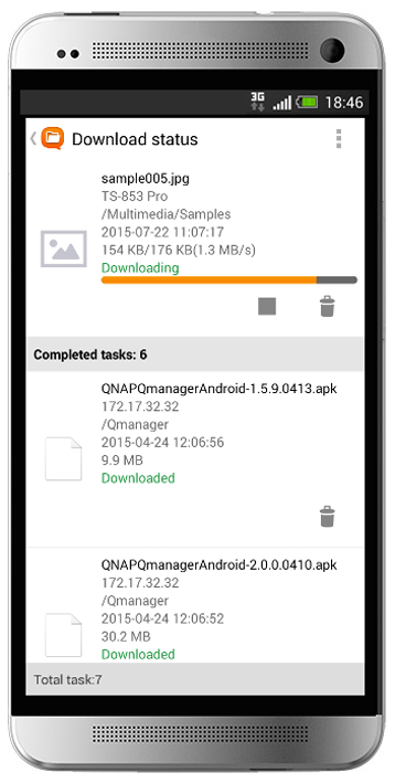 Easily search download sources, download contents to the Turbo NAS, and manage download tasks on mobile devices.