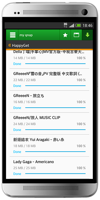 With a simple tap, you can back up YouTube videos to the Turbo NAS through the HappyGet*.