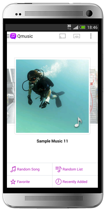 4 ways to play the music immediately: Random song, Random playlist, My favorite, and Recently added.