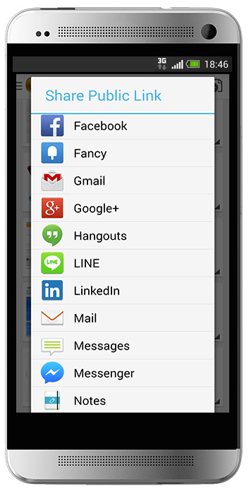 Create download links for shared folders or files to share via email, SMS, mobile apps such as WeChat, Line, WhatsApp*, or email the files as attachments.