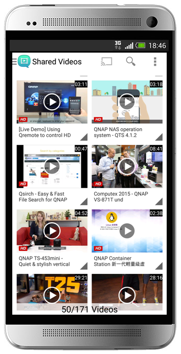 The free Qvideo app allows you to enjoy and share the video collection stored on your Turbo NAS from mobile devices anytime and anywhere.